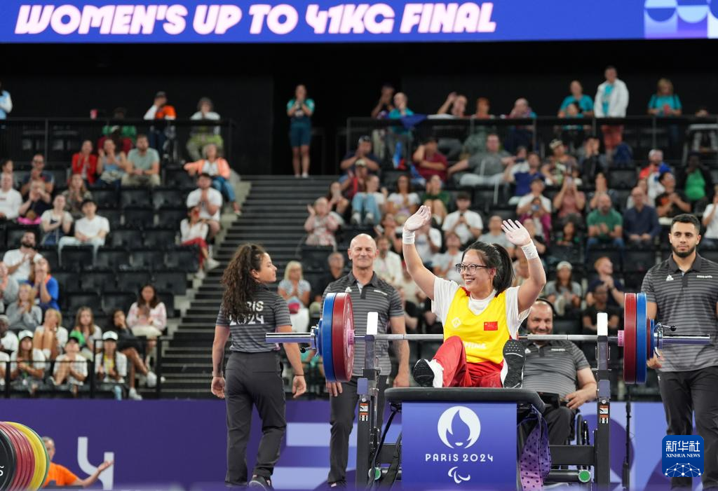 当日,在巴黎残奥会举重女子41公斤级比赛中,中国选手崔哲以119公斤的成绩夺得冠军。