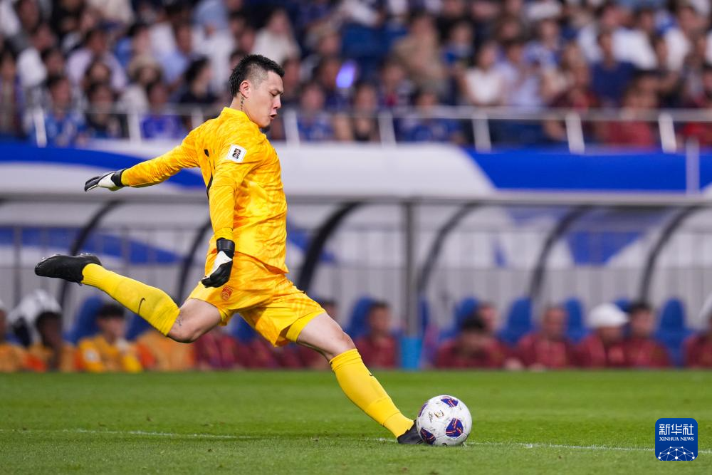 9月5日,中国队守门员王大雷在比赛中开门球。新华社记者 张笑宇 摄