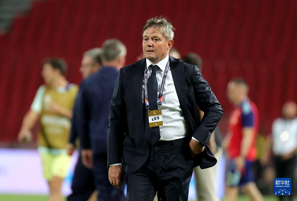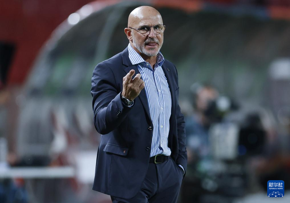 9月5日,西班牙队主教练德拉富恩特在场边观战。