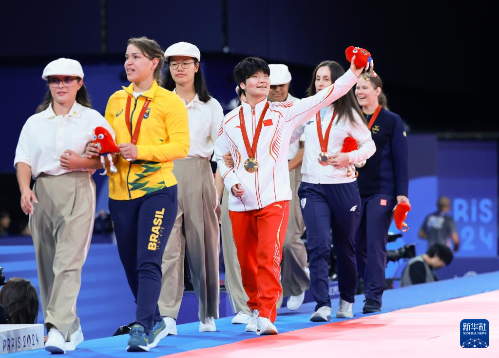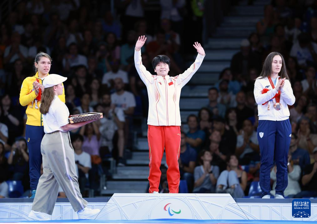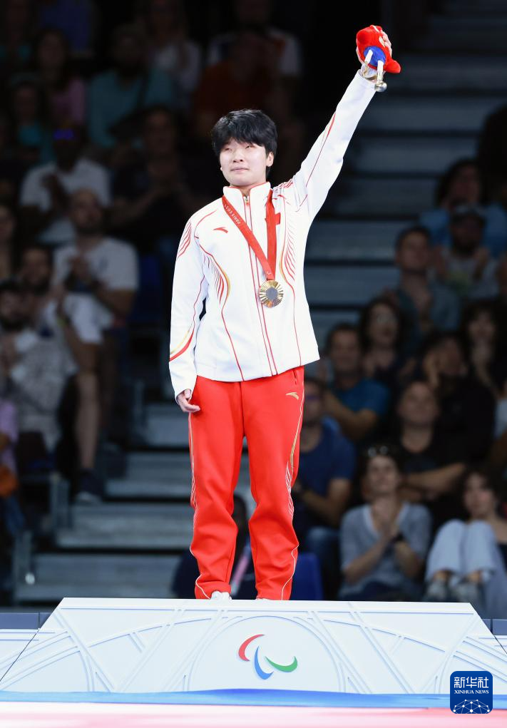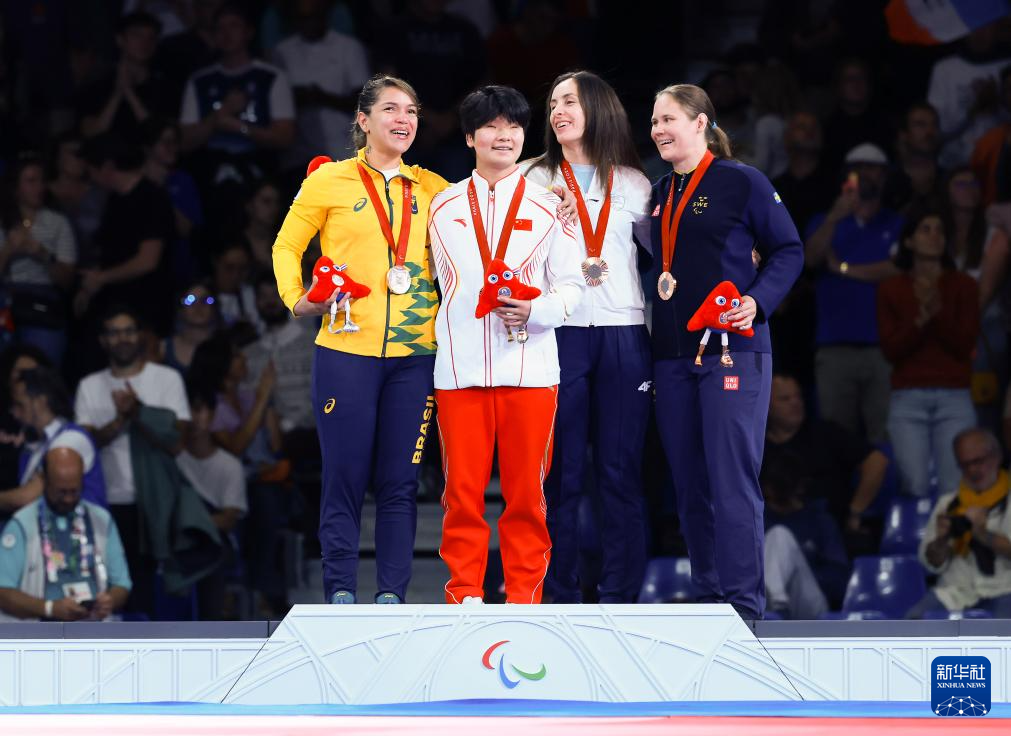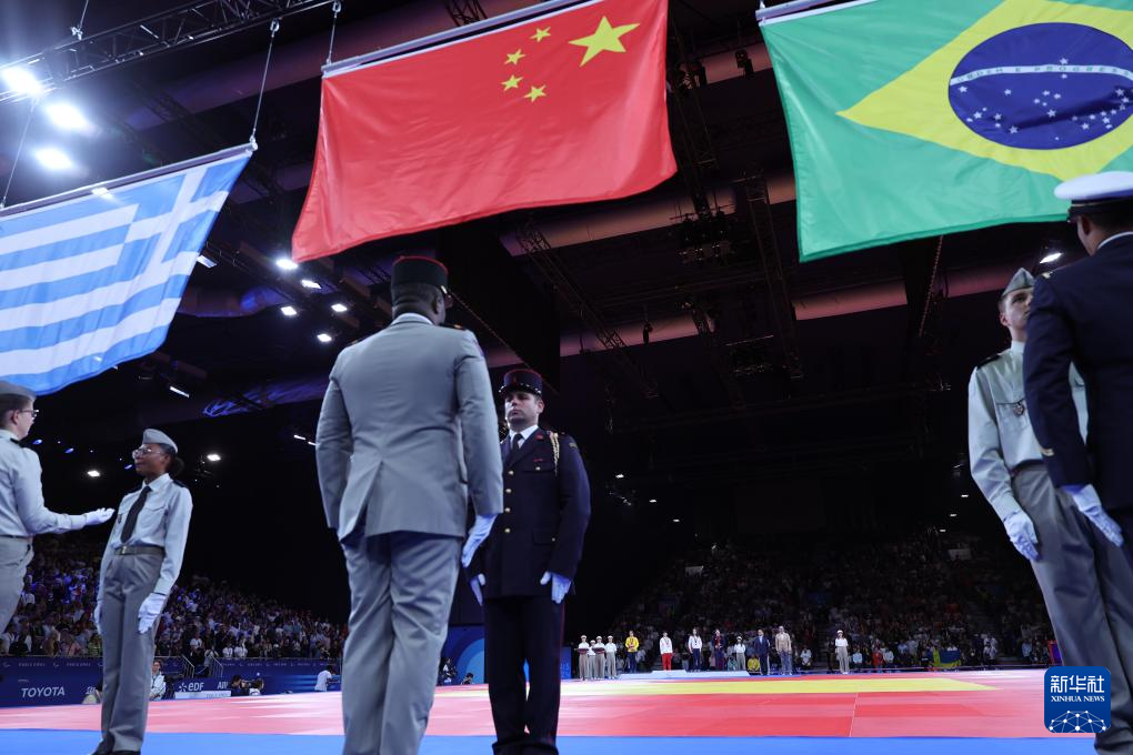 这是9月6日拍摄的巴黎残奥会盲人柔道女子70公斤J1级颁奖升旗仪式现场。