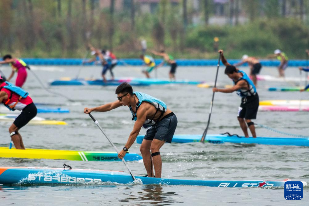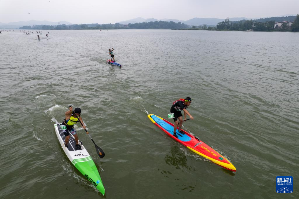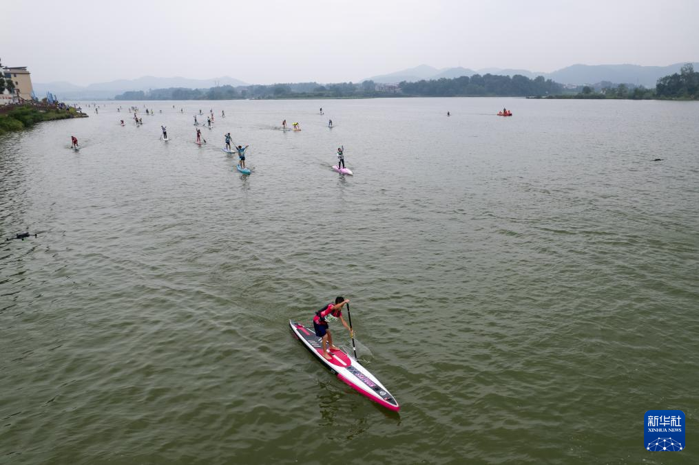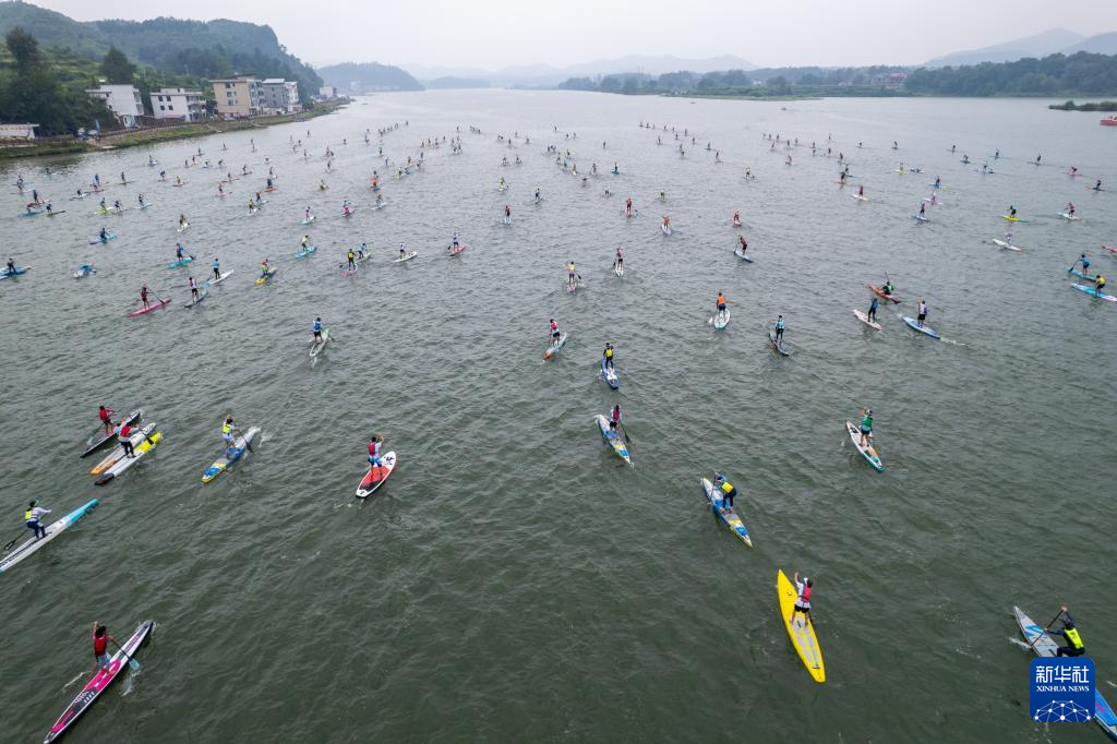 当日,中国桨板超级联赛·第三届天子湖桨板公开赛在湖南省邵阳市邵阳县天子湖国家湿地公园举行,来自全国各地近千名桨板运动员和桨板运动爱好者参加了本次赛事。