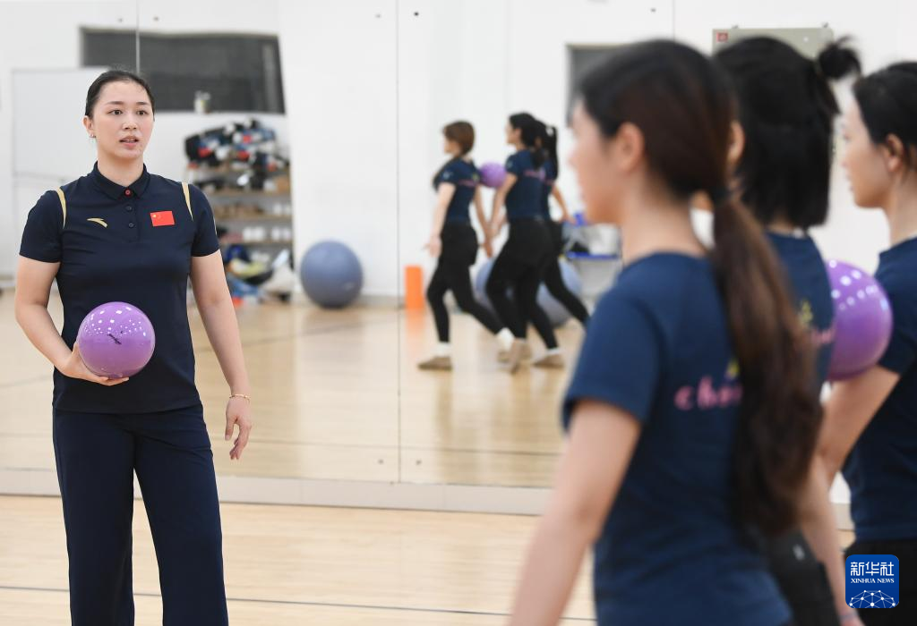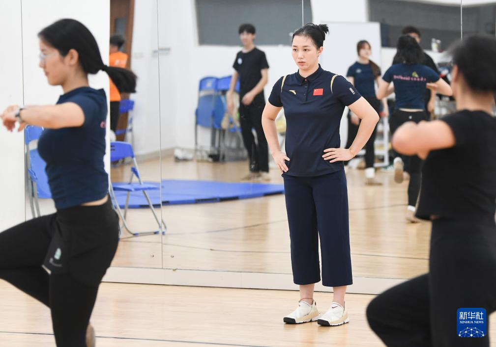 杨伊琳在中山大学体育馆体操教室指导啦啦操队队员训练(2024年9月5日摄)。新华社记者 邓华 摄