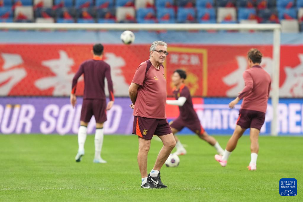 当日,中国国家男子足球队在大连召开赛前新闻发布会并进行赛前训练。中国队将在9月10日举行的2026年世界杯亚洲区预选赛18强赛C组第2轮比赛中对阵沙特队。