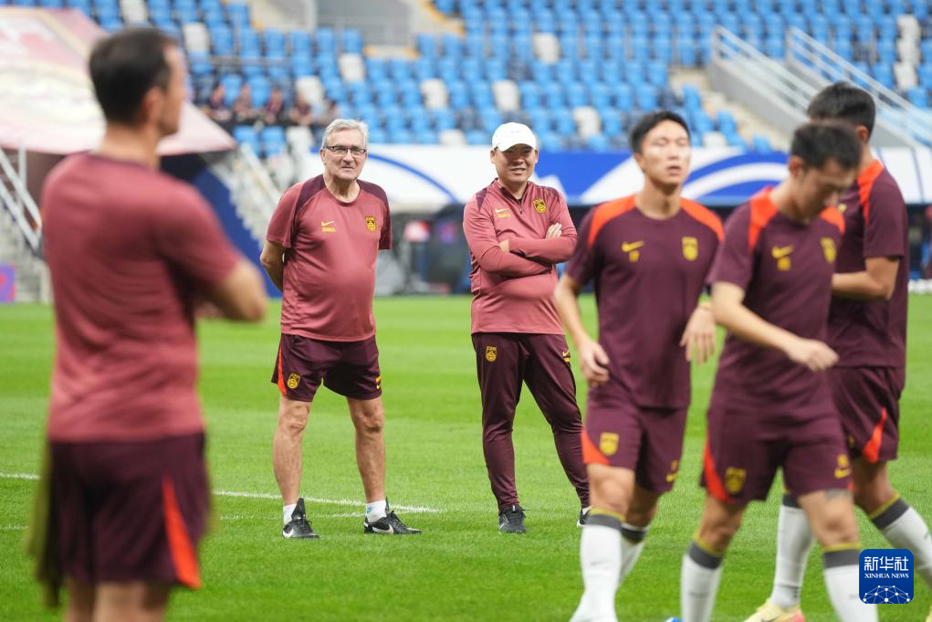 9月9日,中国队主教练伊万科维奇(左二)在训练中。新华社记者 潘昱龙 摄