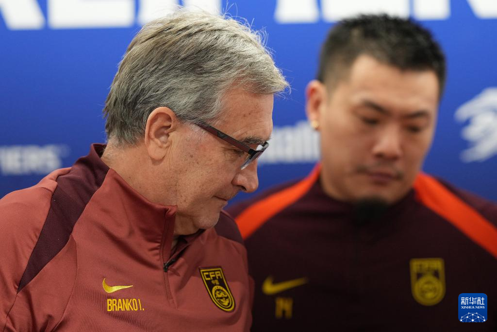 9月9日,中国队主教练伊万科维奇(前)在发布会上。新华社记者 潘昱龙 摄