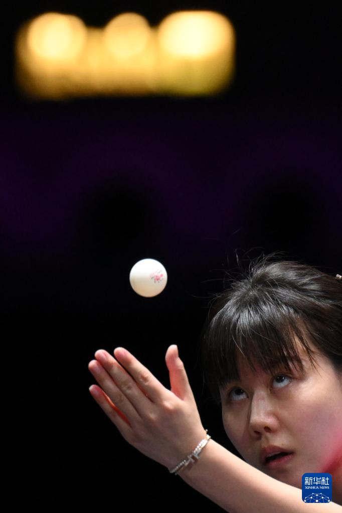 9月10日,平野美宇在比赛中发球。新华社记者 张金加 摄