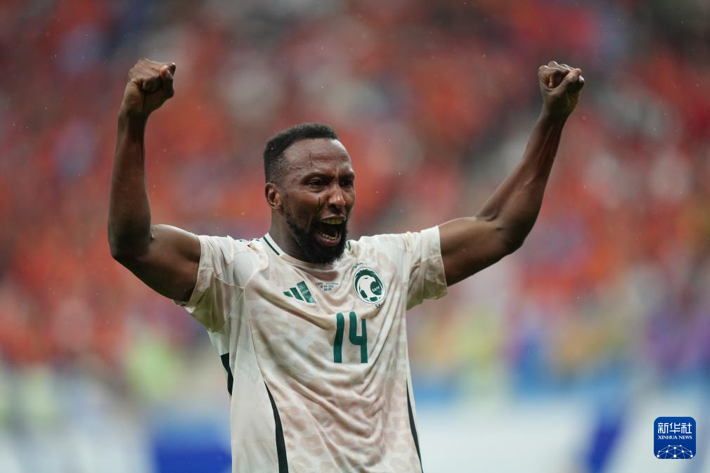 9月10日,沙特队球员卡代什(右二)在比赛中庆祝绝杀进球。