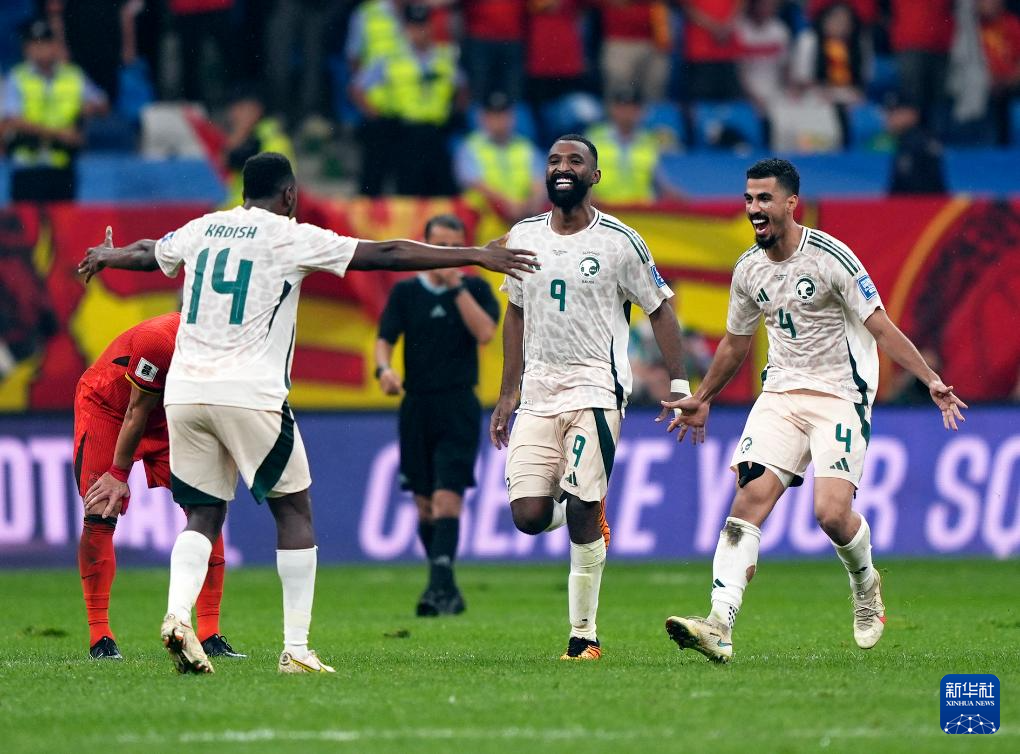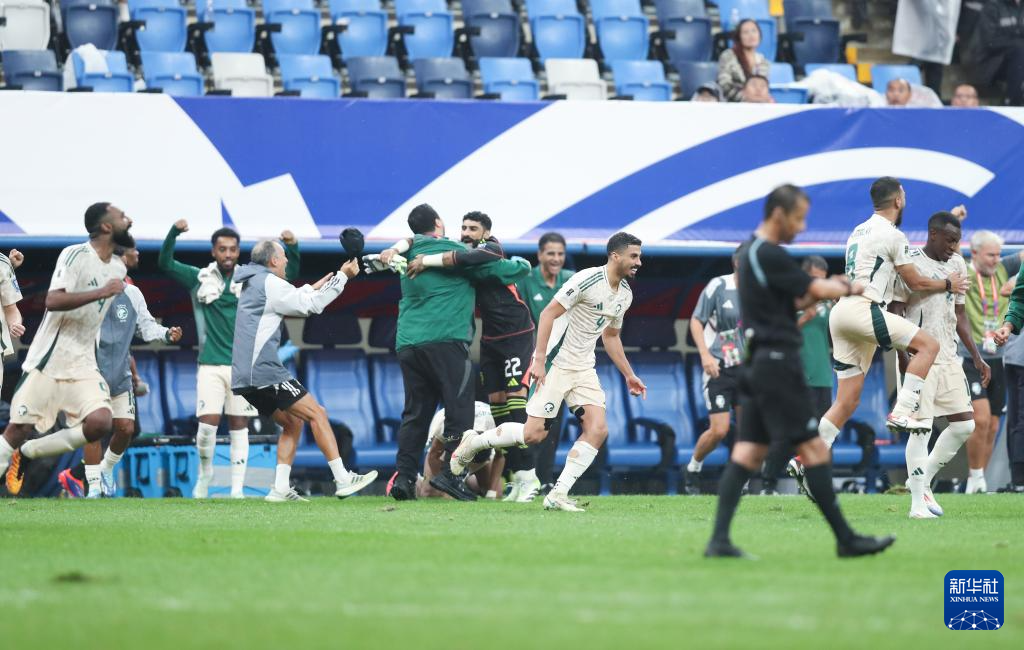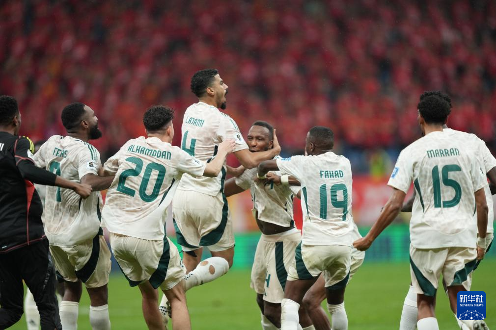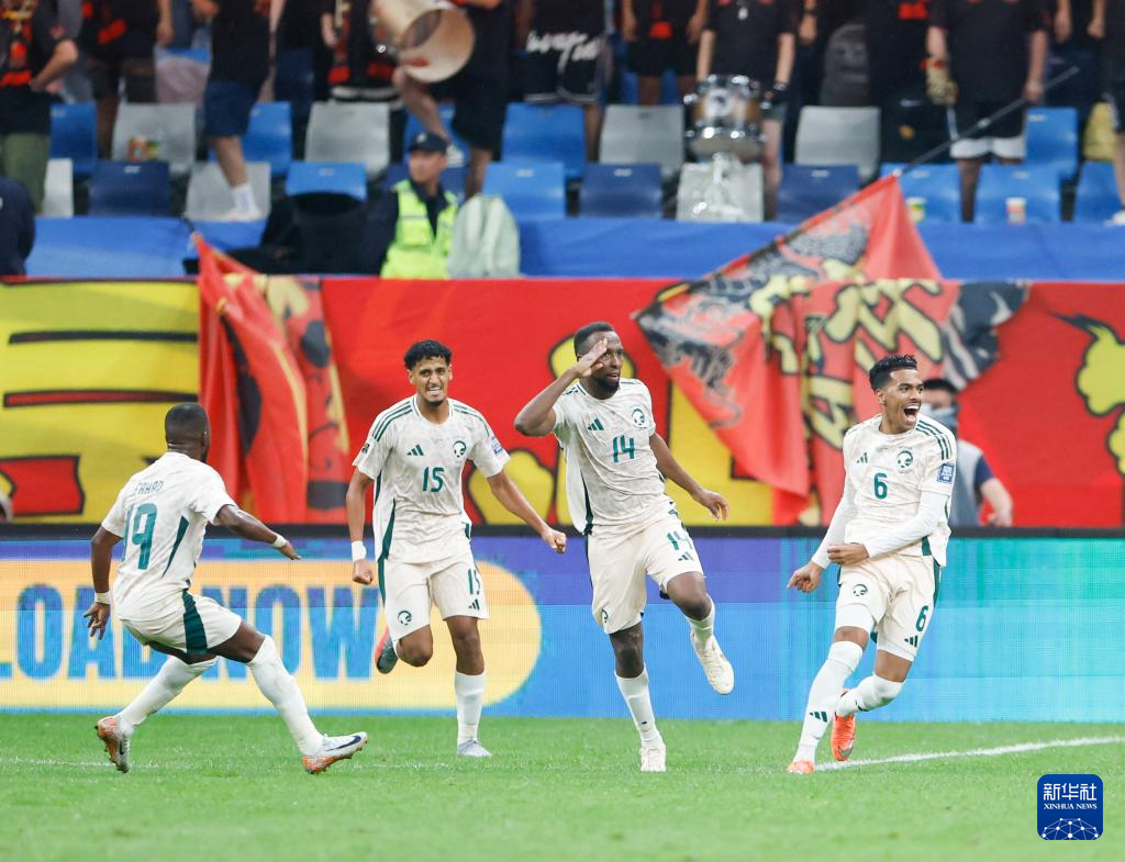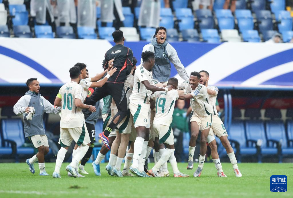 9月10日,沙特队球员在比赛中庆祝绝杀进球。