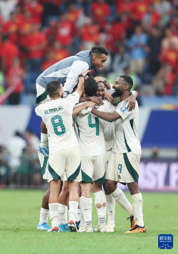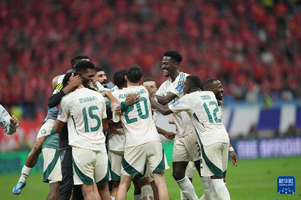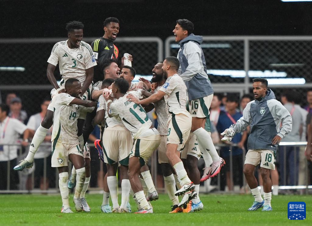 9月10日,沙特队球员在比赛后庆祝胜利。