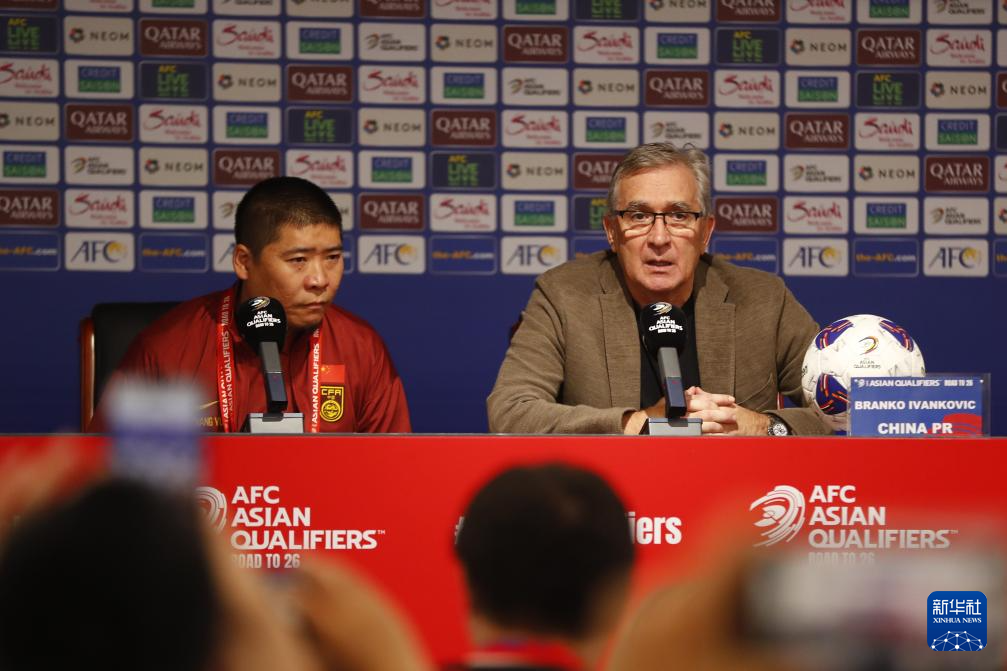 9月10日,中国队主教练伊万科维奇(右)在赛后新闻发布会上。
