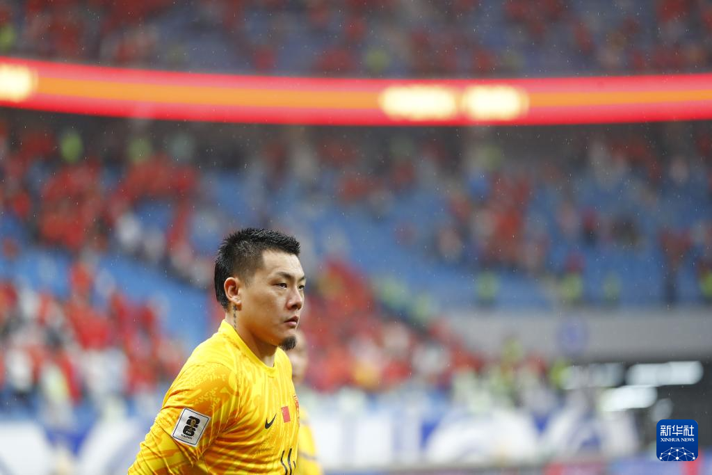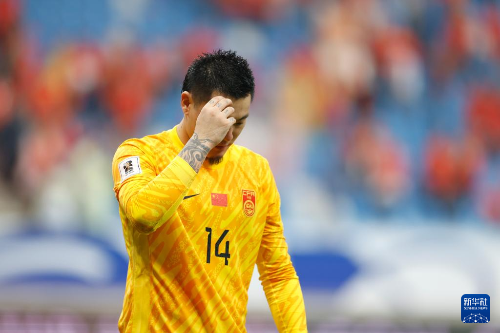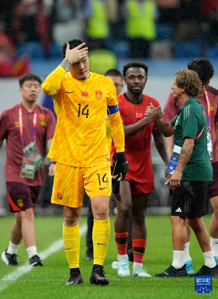 9月10日,中国队守门员王大雷(前)在比赛后。
