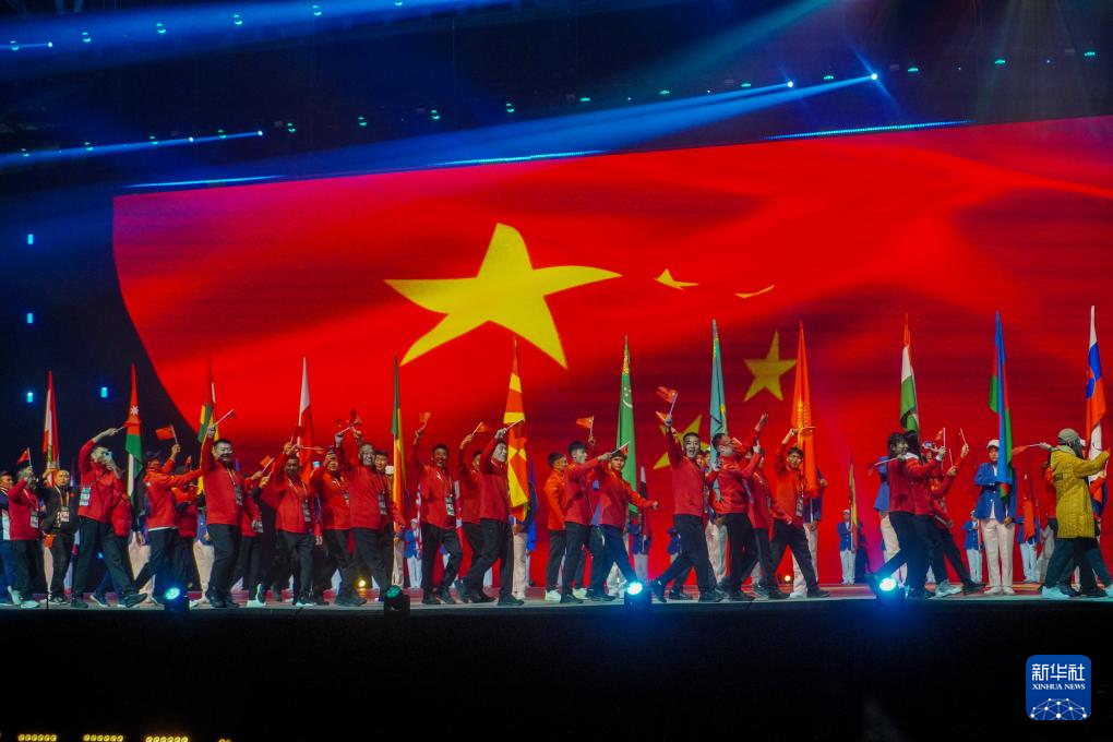 9月8日,哈萨克斯坦代表团在开幕式上入场。新华社发