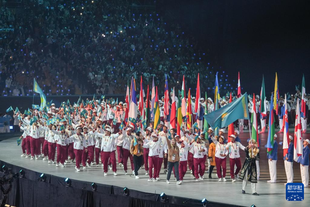 当日,第五届世界游牧民族运动会在哈萨克斯坦首都阿斯塔纳市举行开幕仪式。赛事为期6天,来自89个国家和地区的2500余名运动员将参与21个大项的比赛。比赛项目富有游牧民族风情特色,包括叼羊、骑马射箭、传统射箭、摔跤和格斗等。