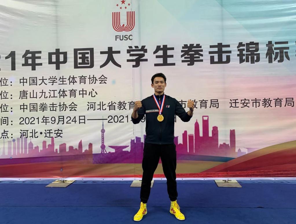 他在全国大学生拳击锦标赛上一举夺得冠军