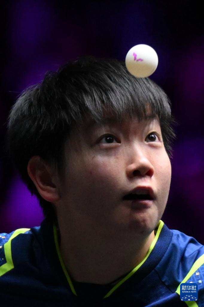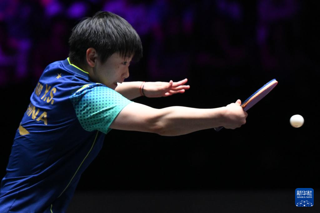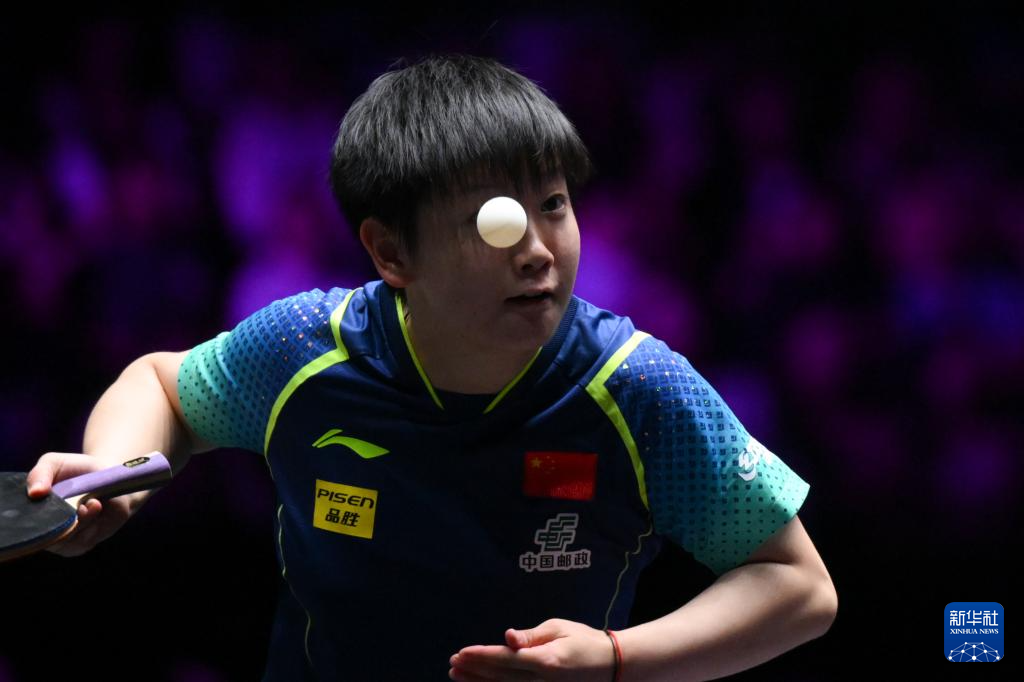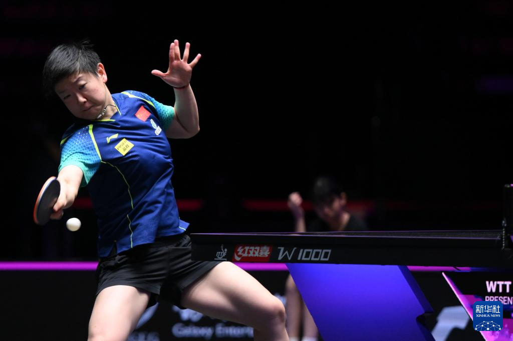 9月14日,孙颖莎在比赛中回球。新华社记者 张金加 摄