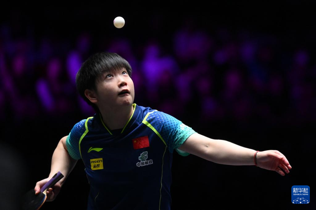 9月14日,孙颖莎在比赛中发球。新华社记者 张金加 摄
