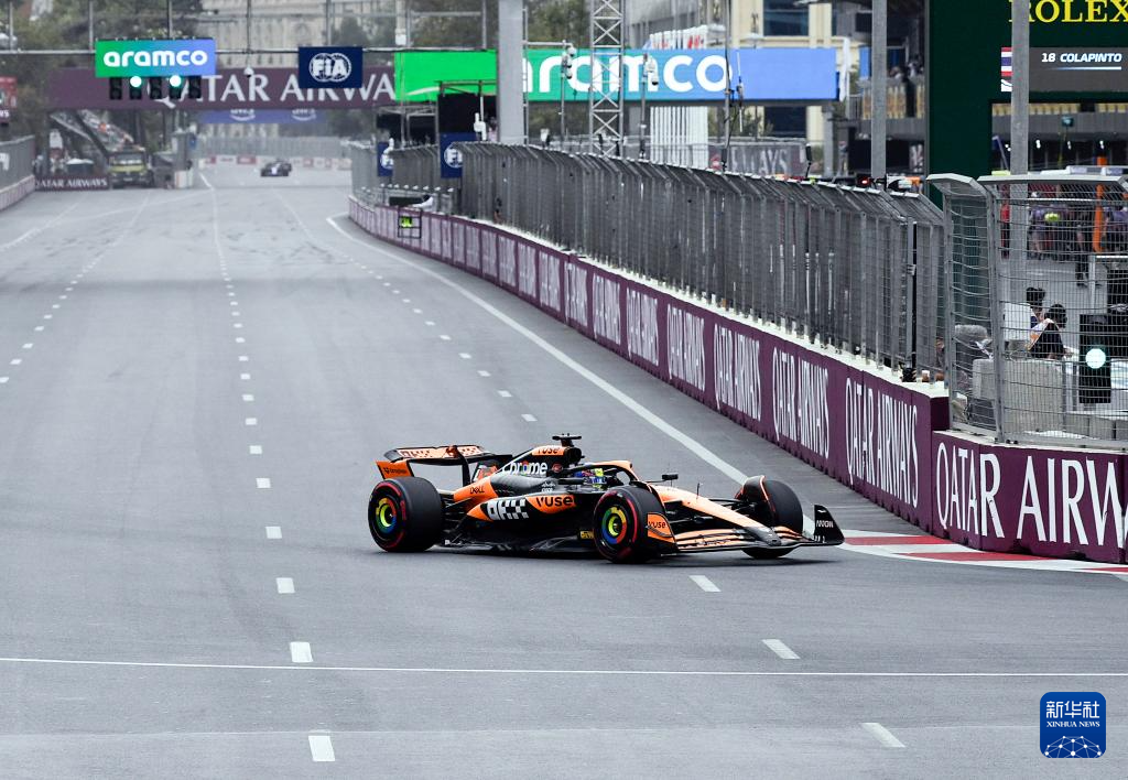 9月14日,迈凯伦车队澳大利亚车手皮亚斯特里在练习赛中。新华社发(托菲克·巴巴耶夫摄)