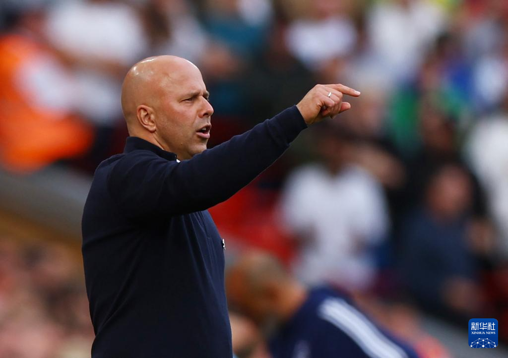 9月14日,利物浦队主教练斯洛特在比赛中指挥。新华社/路透