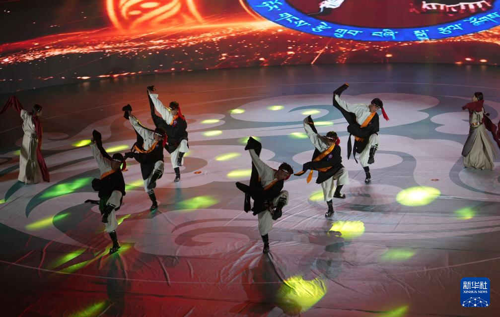 9月15日,演员在开幕式上表演藏戏。新华社发(卢丹阳摄)