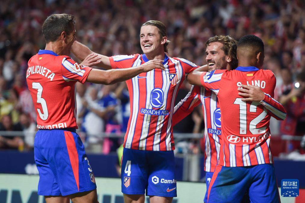 当日,在2024-2025赛季西班牙足球甲级联赛第五轮比赛中,马德里竞技队主场3比0战胜巴伦西亚队。