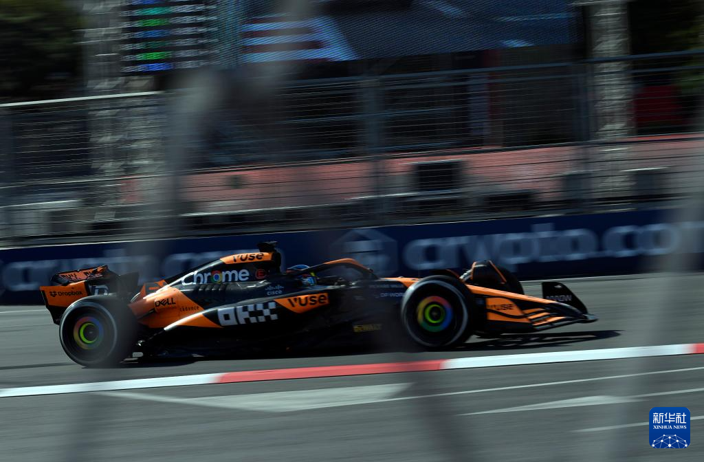 9月15日,迈凯伦车队澳大利亚车手皮亚斯特里驾驶赛车在比赛中。最终,他夺得冠军。新华社发(托菲克·巴巴耶夫摄)