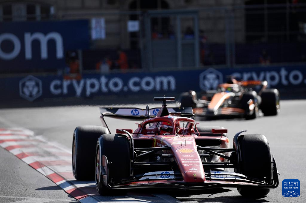9月15日,法拉利车队摩纳哥车手勒克莱尔驾驶赛车在比赛中。最终,他获得亚军。新华社发(托菲克·巴巴耶夫摄)