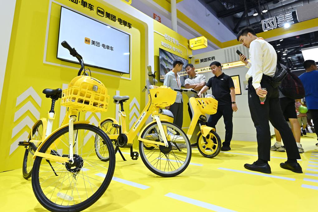 2023年9月2日,观众在服贸会上了解共享单车、助力自行车和电单车等低碳出行方式。新华社记者 李鑫 摄