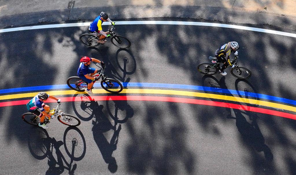 9月8日,选手在2024年湖南衡山九观湖环湖自行车赛骑行。新华社发(曹正平摄)