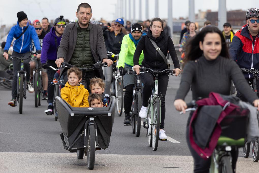 4月20日,匈牙利布达佩斯举办自行车骑行活动,倡导人们低碳出行。新华社发(弗尔季·奥蒂洛摄)