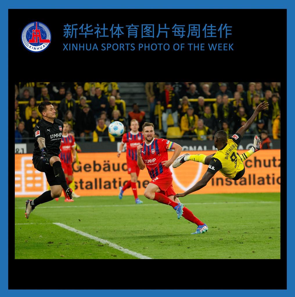 9月13日,多特蒙德队球员吉拉西(右)在比赛中射门。当日,在2024-2025赛季德国足球甲级联赛第三轮比赛中,多特蒙德队主场4比2战胜海登海姆队。