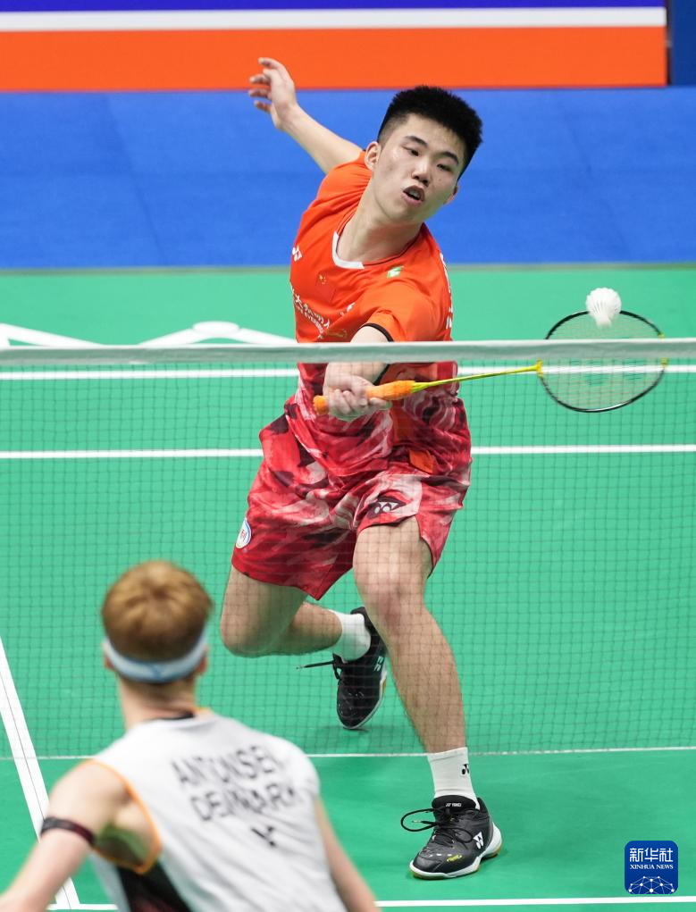 当日,在江苏省常州市举行的2024中国羽毛球公开赛男单四分之一决赛中,中国选手翁泓阳2比1战胜丹麦选手安东森,晋级四强。