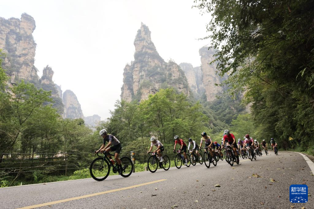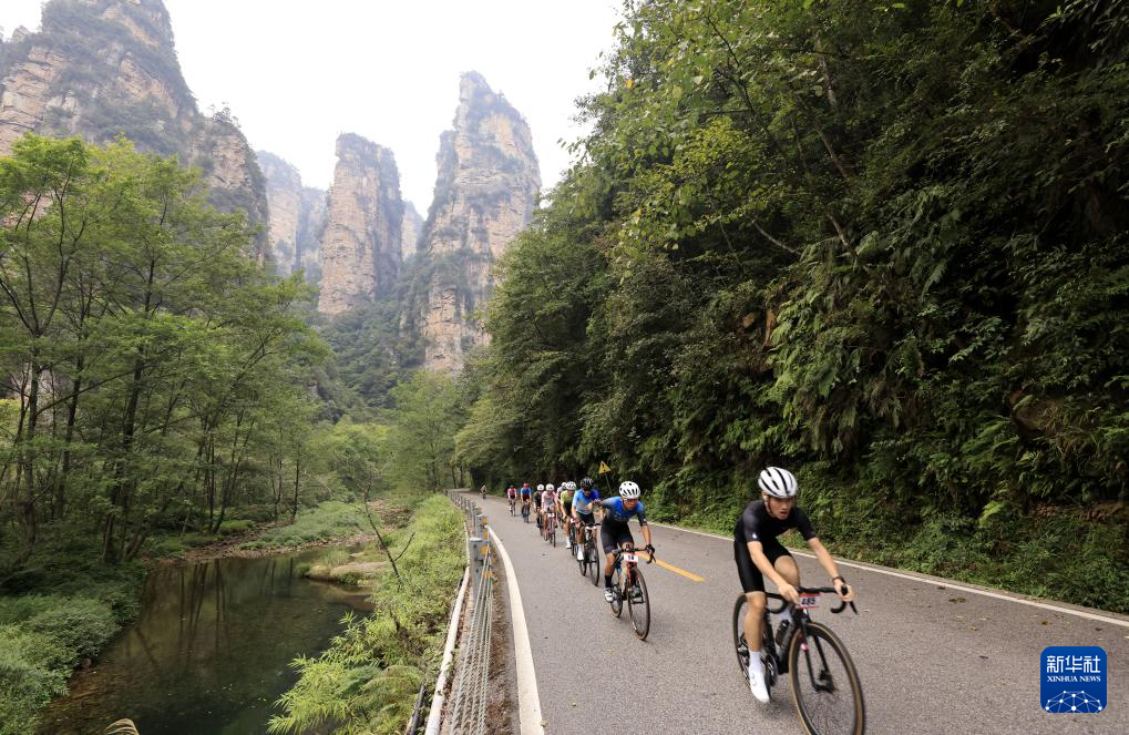 当日,第七届“峰林穿越”自行车挑战赛在湖南张家界国家森林公园举行,近千名车手在18公里长的峰林赛道上骑行竞速。
