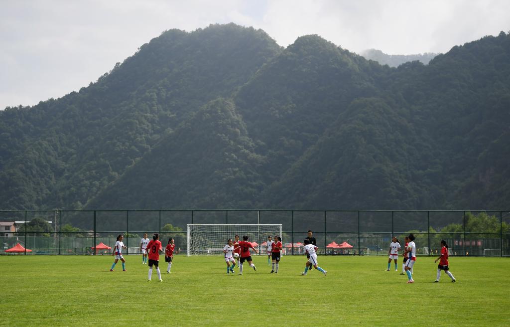 在留坝县营盘村建成的足球小镇