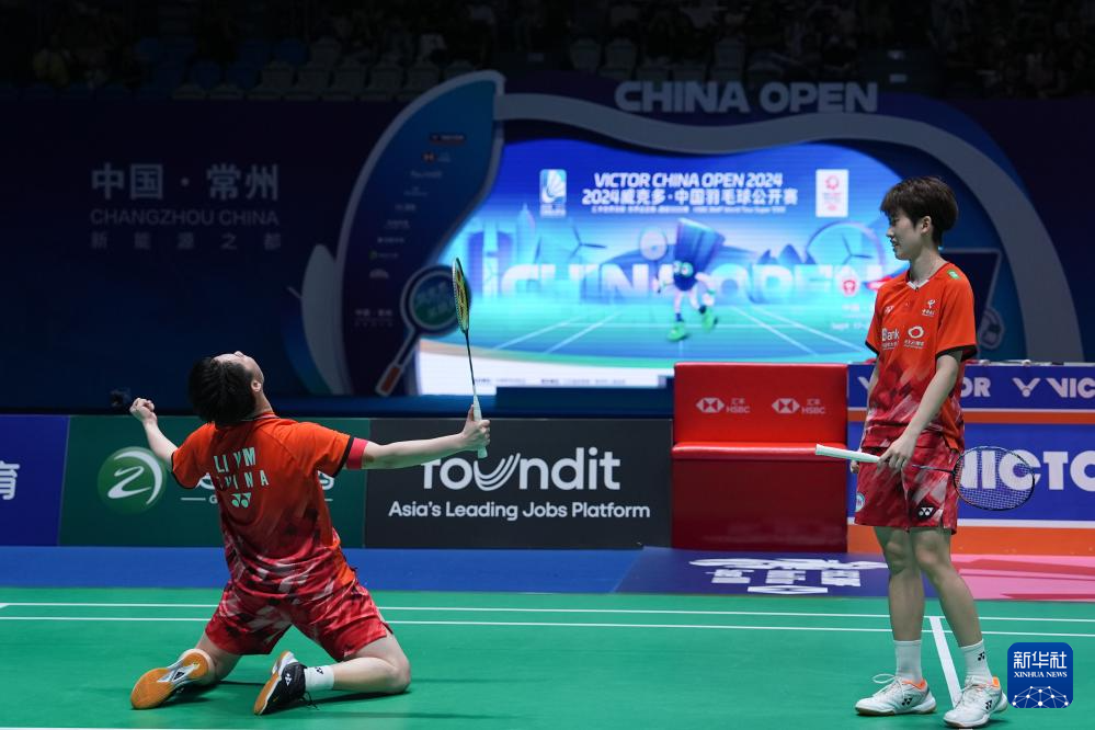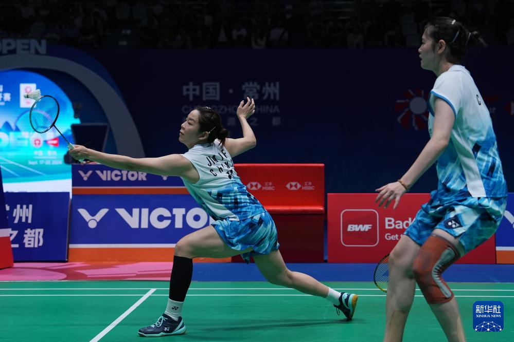 当日,在江苏省常州市举行的2024中国羽毛球公开赛女子双打半决赛中,中国组合李汶妹/张殊贤2比0战胜另一对中国组合贾一凡/郑雨,晋级决赛。