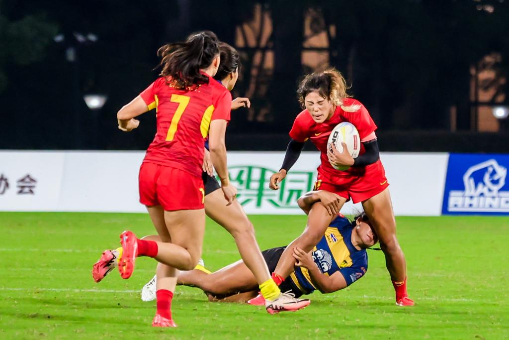 21日的小组赛,中国女橄以压倒性的优势,先后战胜新加坡、哈萨克斯坦和泰国队,以三战全胜的成绩挺进半决赛。