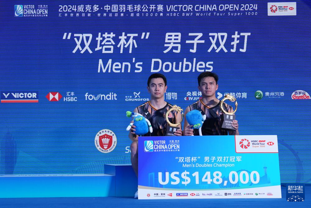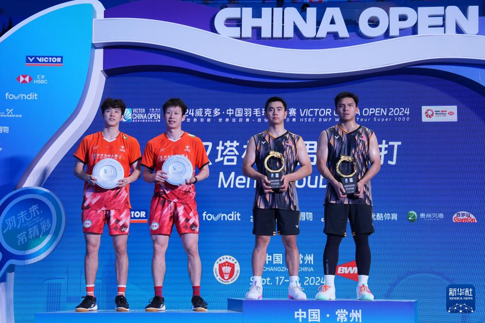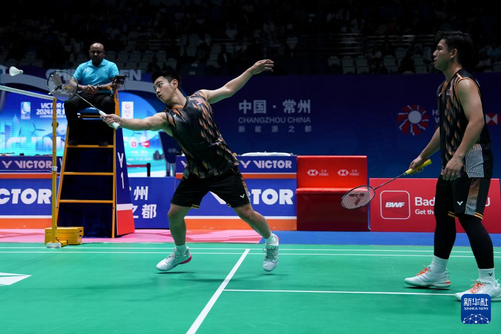 当日,在江苏省常州市举行的2024中国羽毛球公开赛男子双打决赛中,马来西亚组合吴世飞/伊祖丁2比1战胜中国组合何济霆/任翔宇,获得冠军。