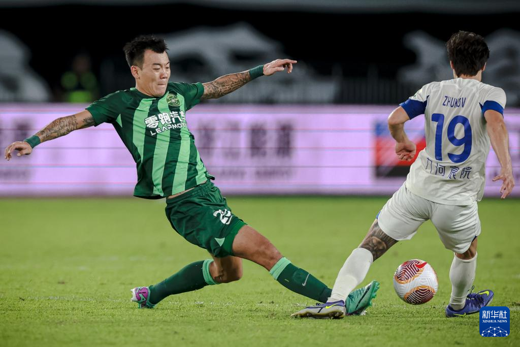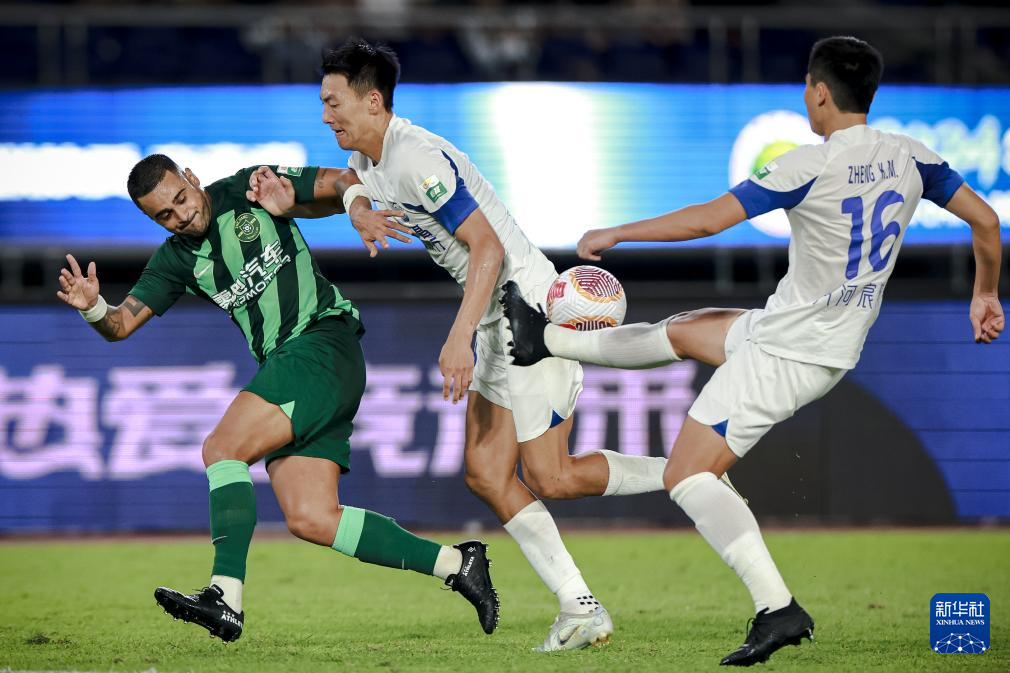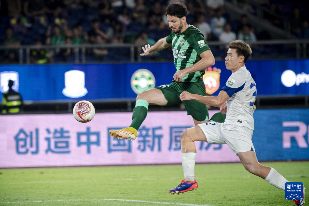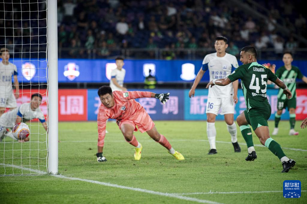 9月22日,浙江队球员莱昂纳多(右一)在比赛中进球。随后,该进球被视频助理裁判(VAR)判定无效。