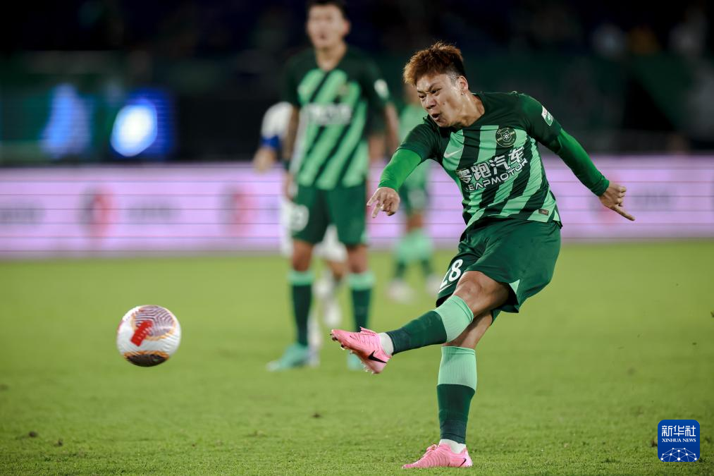 9月22日,浙江队球员岳鑫在比赛中射门。