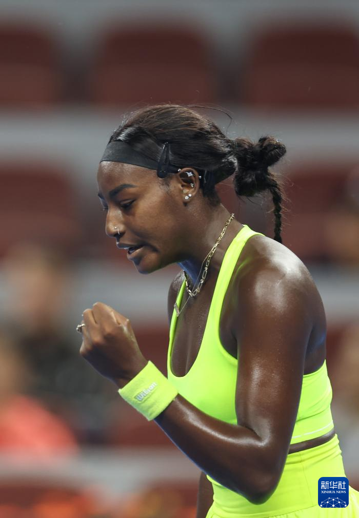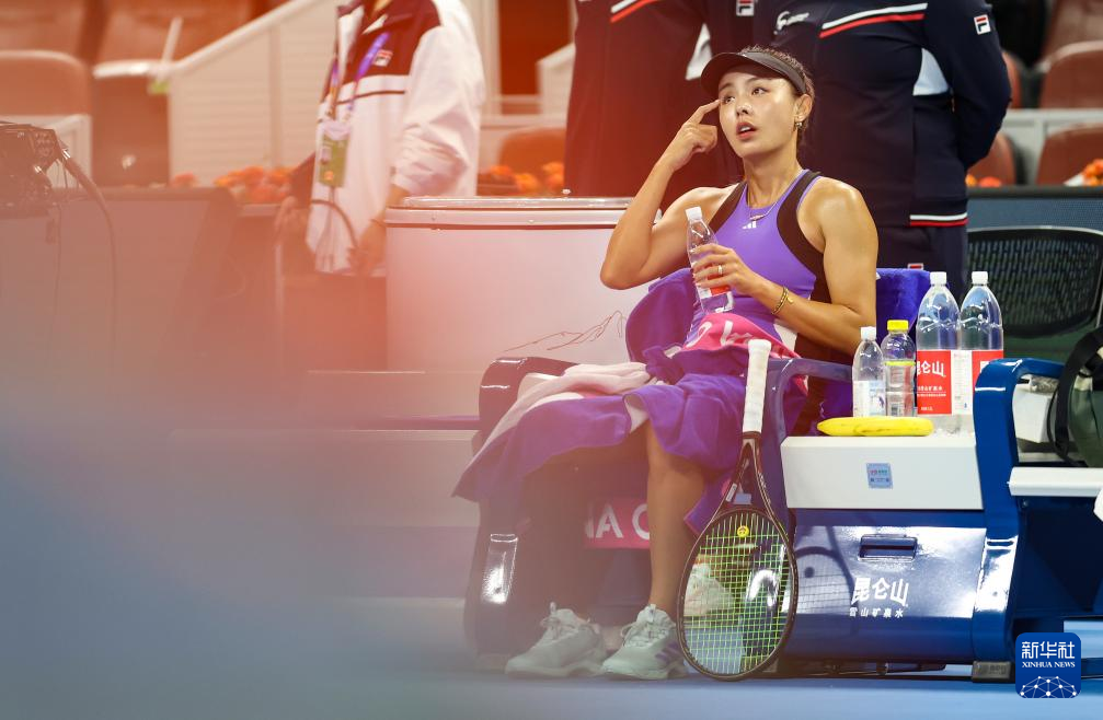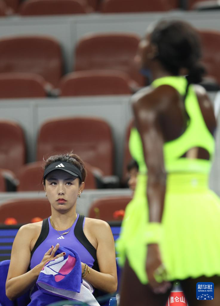 9月25日,王蔷(左)与帕克斯在比赛间隙。
