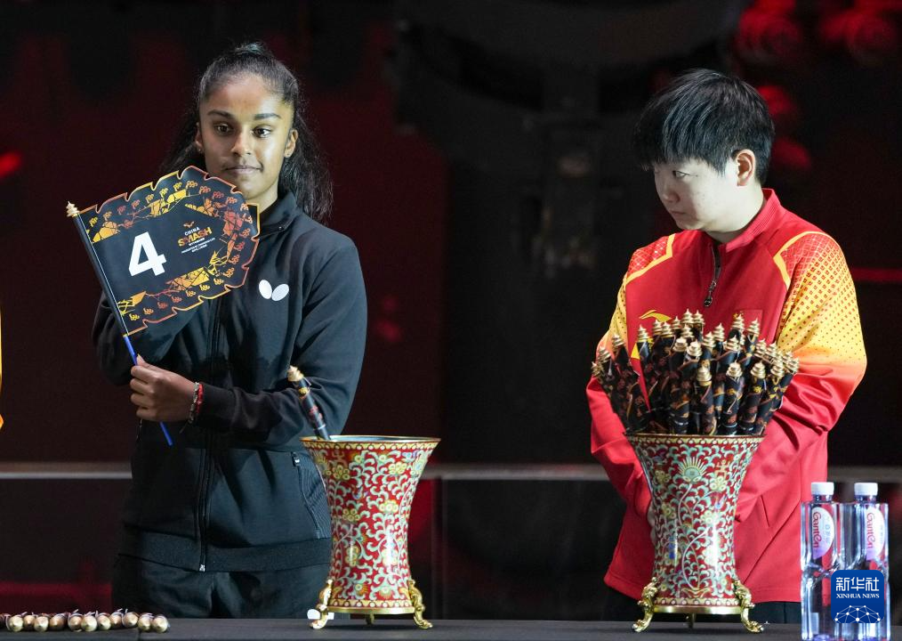 9月27日,中国选手孙颖莎(右)在抽签仪式上。