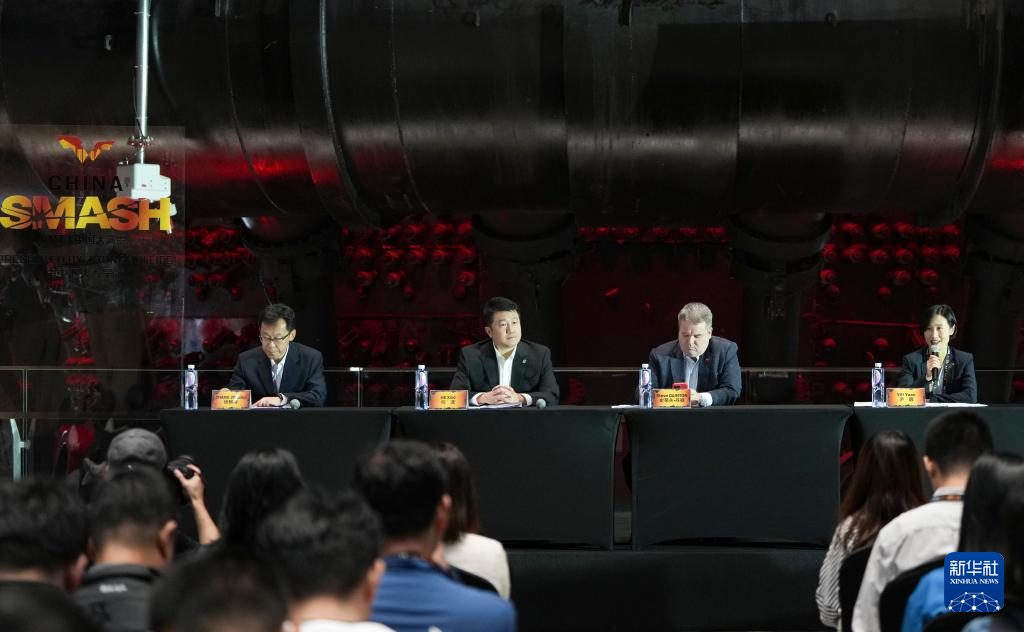 9月27日,北京市石景山区副区长尹圆(右一)在WTT中国大满贯赛新闻发布会上发言。