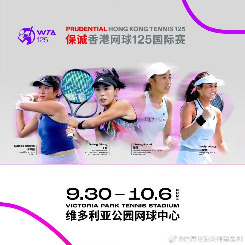 该赛事将在位于香港市中心的维多利亚公园网球场举行,中国球员王蔷和张帅也已确认参赛。组委会还宣布,为庆祝国庆节,9月30日及10月1日两天的比赛将免费向公众开放。