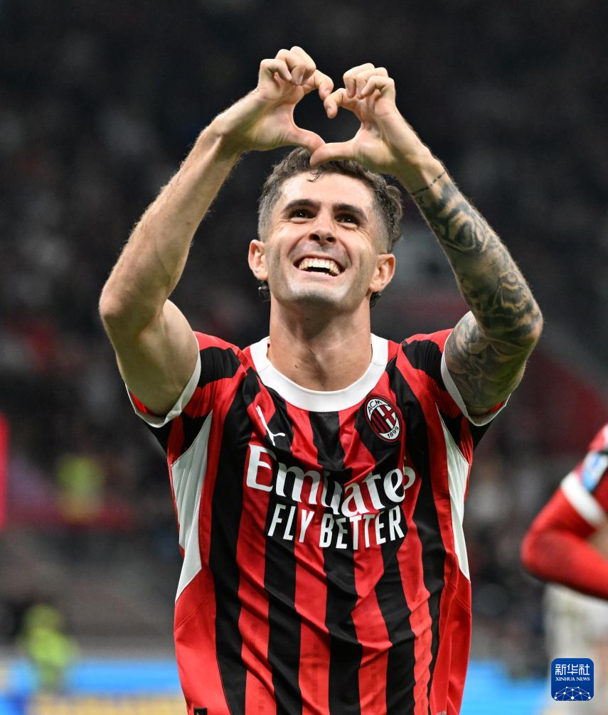 9月27日,AC米兰队球员普利希奇庆祝进球。