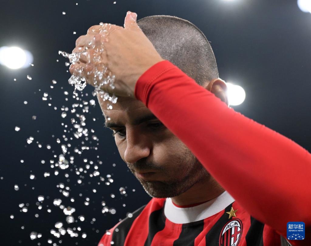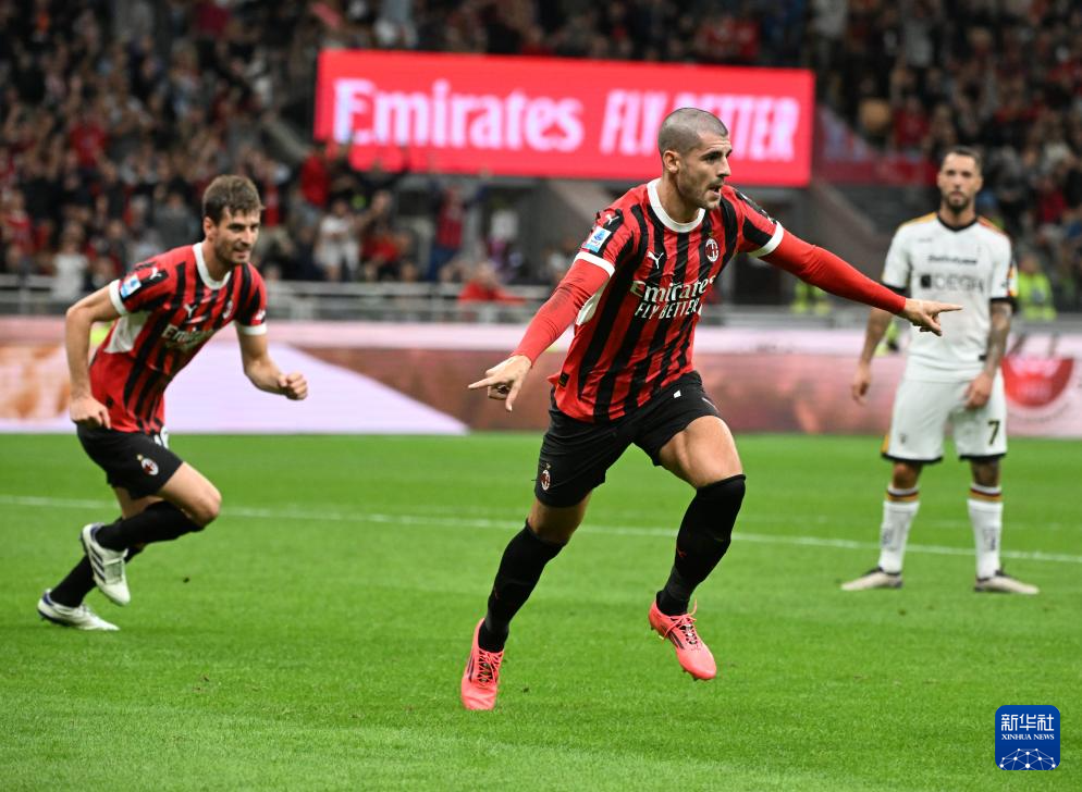 9月27日,AC米兰队球员莫拉塔在比赛中庆祝进球。