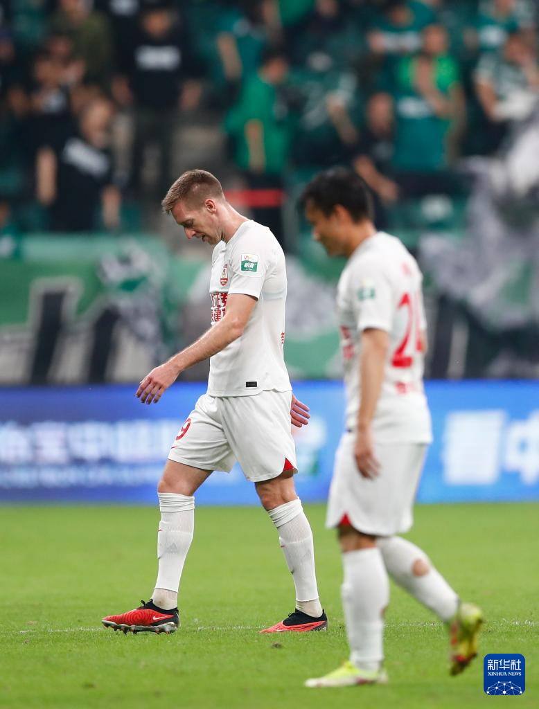 9月28日,长春亚泰队球员贝里奇(左)在上半场比赛结束后离场。