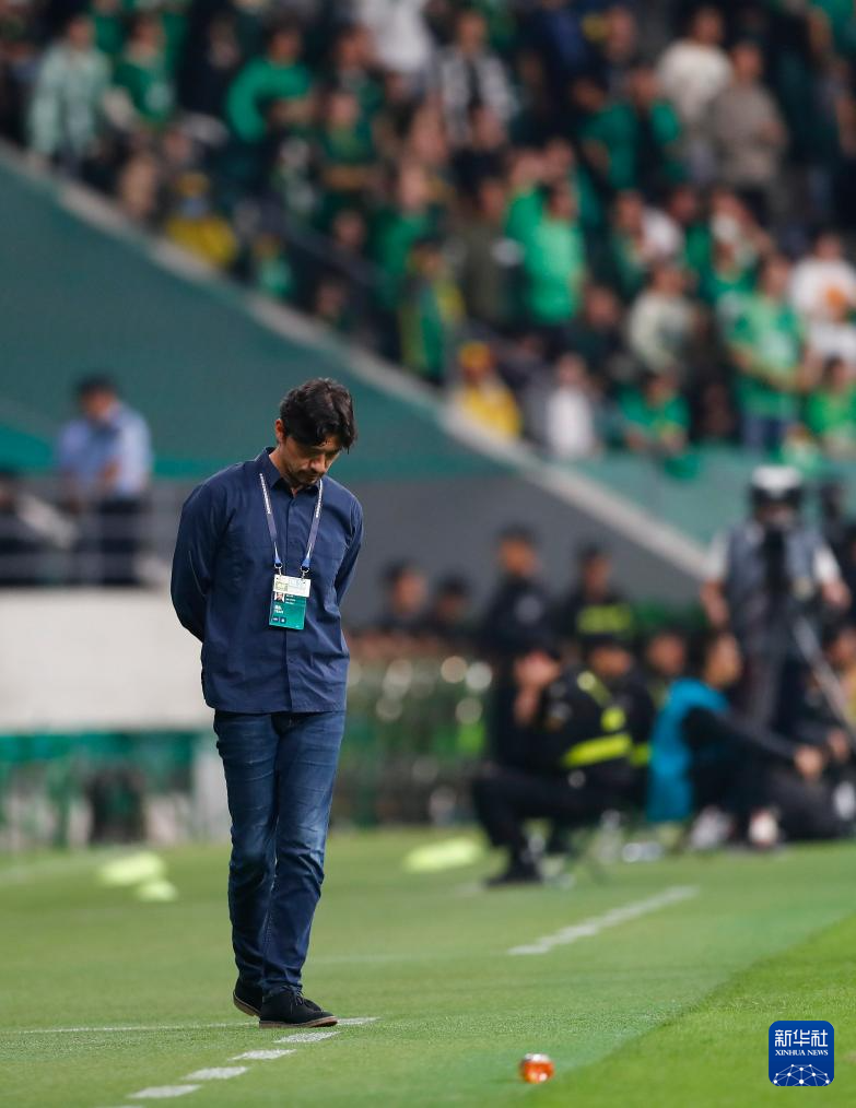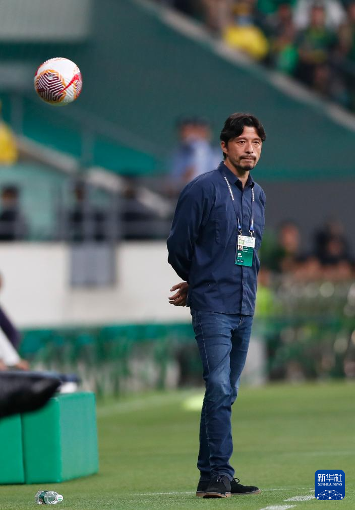 9月28日,长春亚泰队主教练谢晖在场边观战。