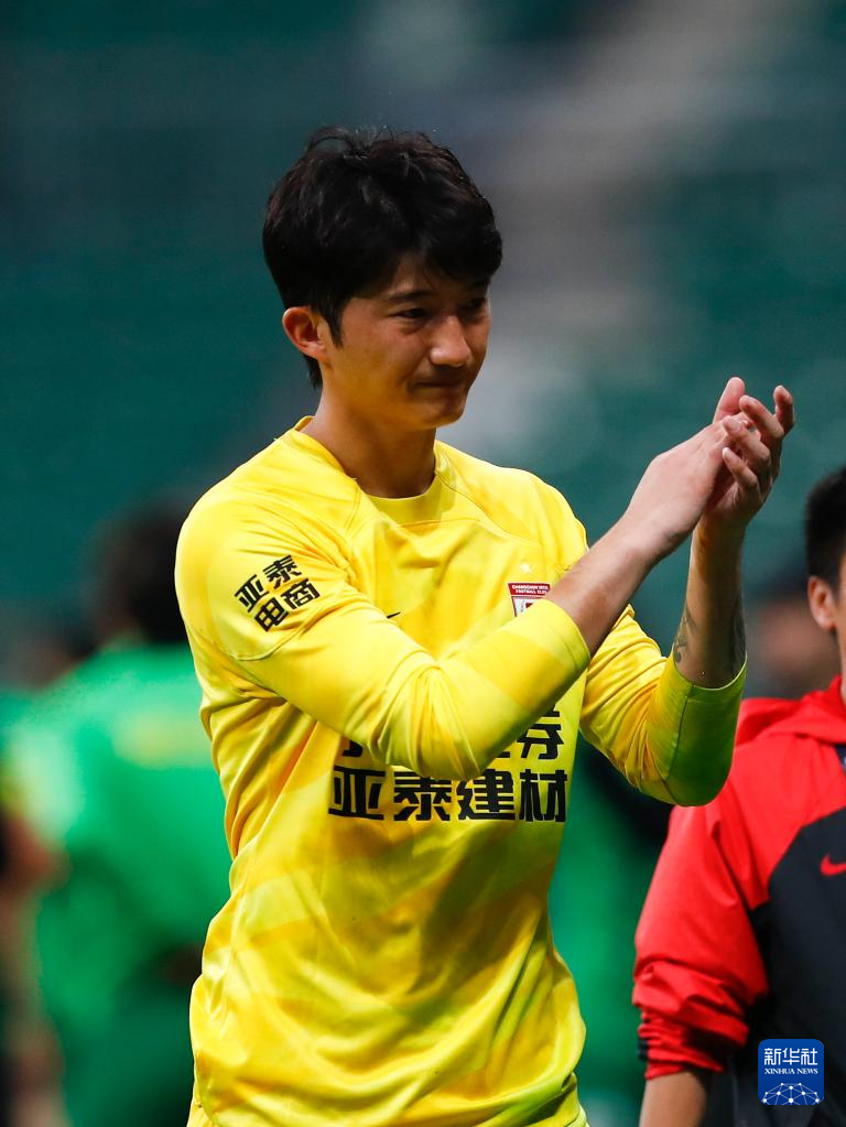 9月28日,长春亚泰队守门员、前北京国安队守门员邹德海在比赛后向观众致意。
