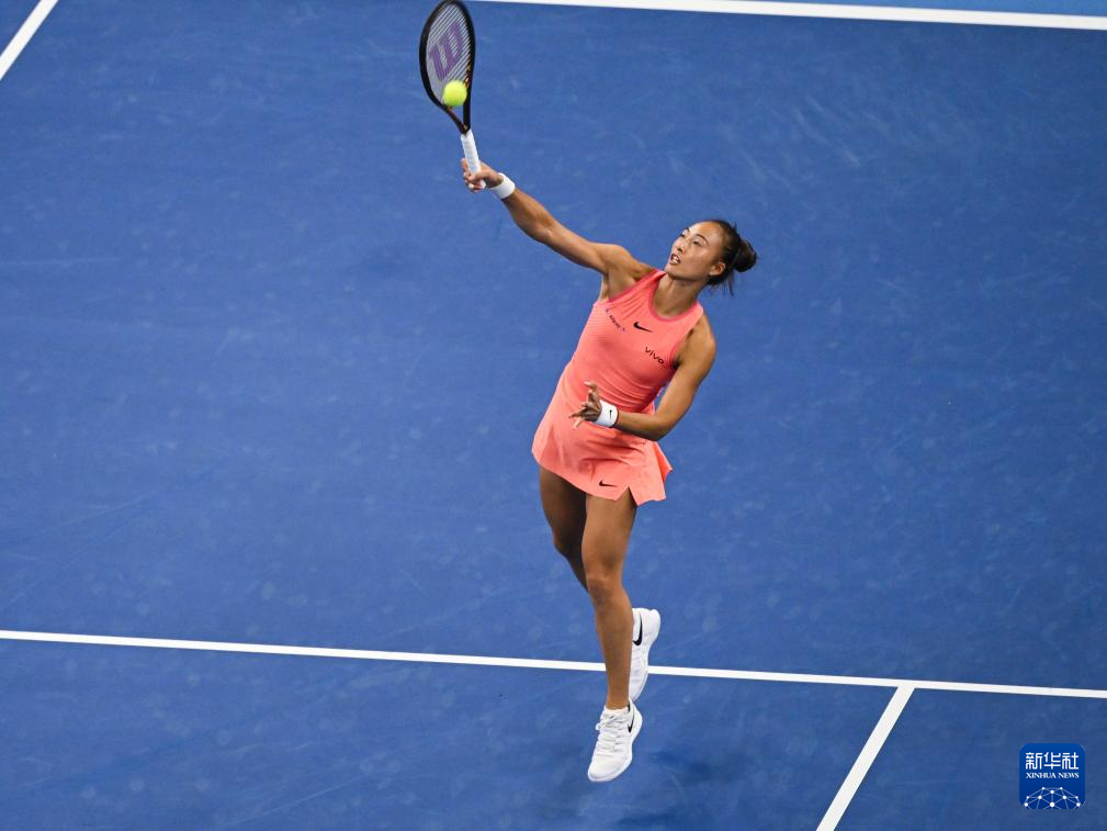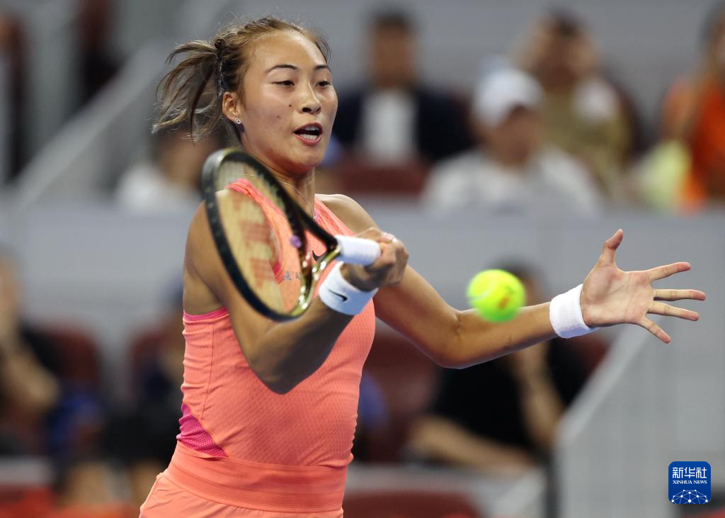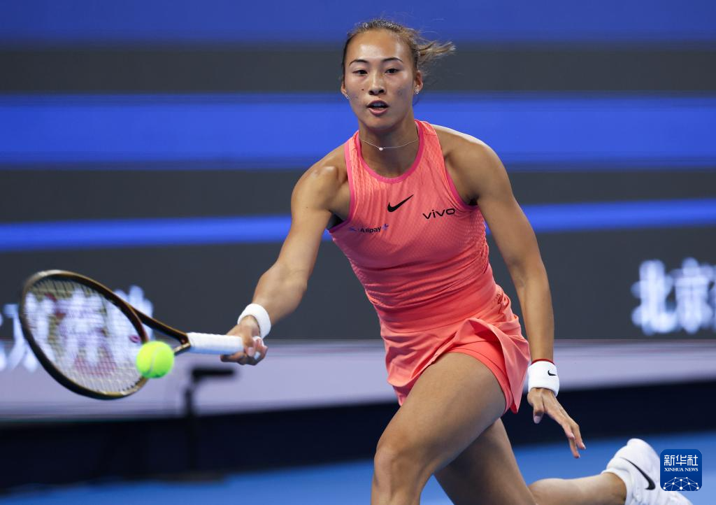 当日,在北京进行的中国网球公开赛女单第二轮比赛中,中国选手郑钦文对阵俄罗斯选手拉希莫娃。