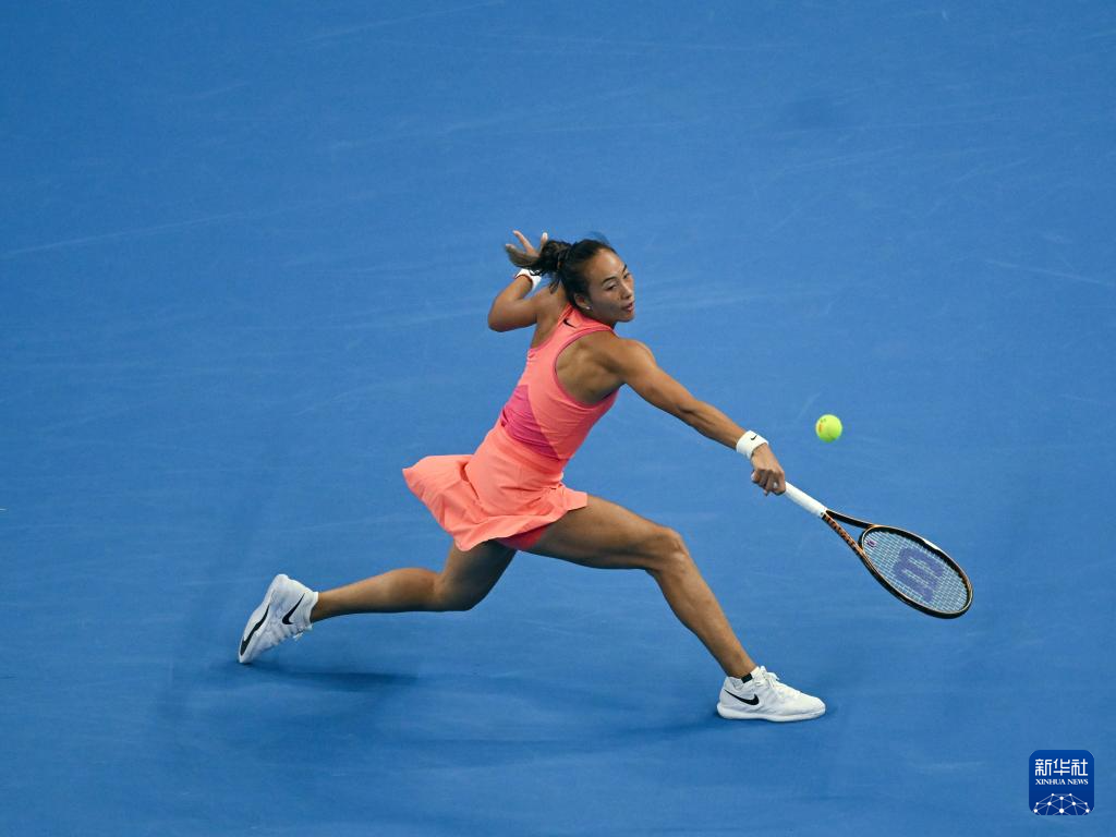 9月28日,郑钦文在比赛中回球。