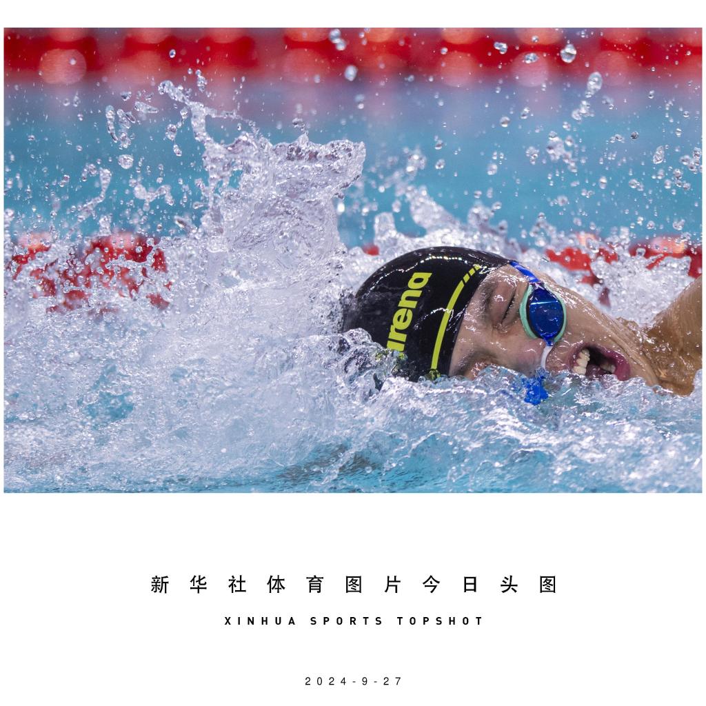 9月27日,河南队第三棒选手禹景铭在比赛中泳镜脱落。